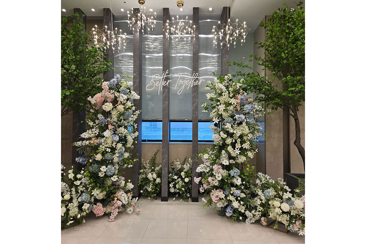 섬세하고 특별한 공간 Special Space Photo Zone 3층 포토존 아름다운 기억을 남기는포토스팟, 포토존 찾아주신 모든 축하객들을 위해 그리너리한 트리와 플라워 데코레이션으로 완성된웨딩더낙원의 3층 포토존은그날의 특별한 순간을 더욱 화사하고 품격 있게 담아냅니다.