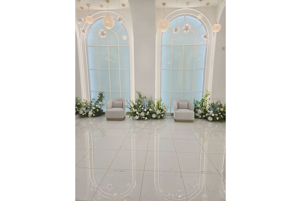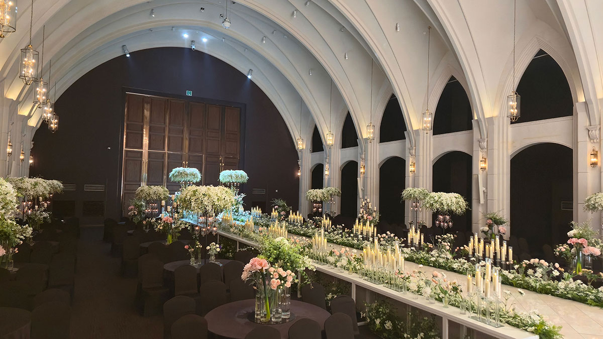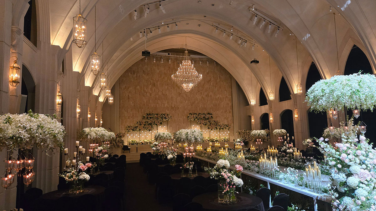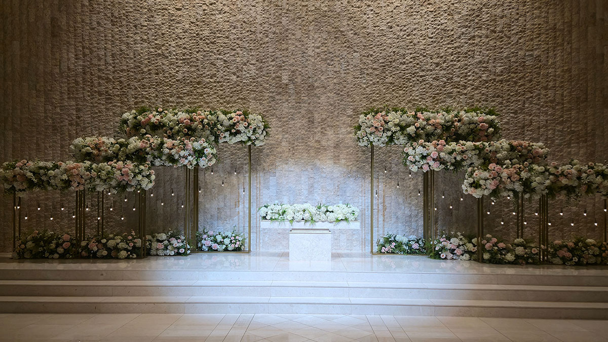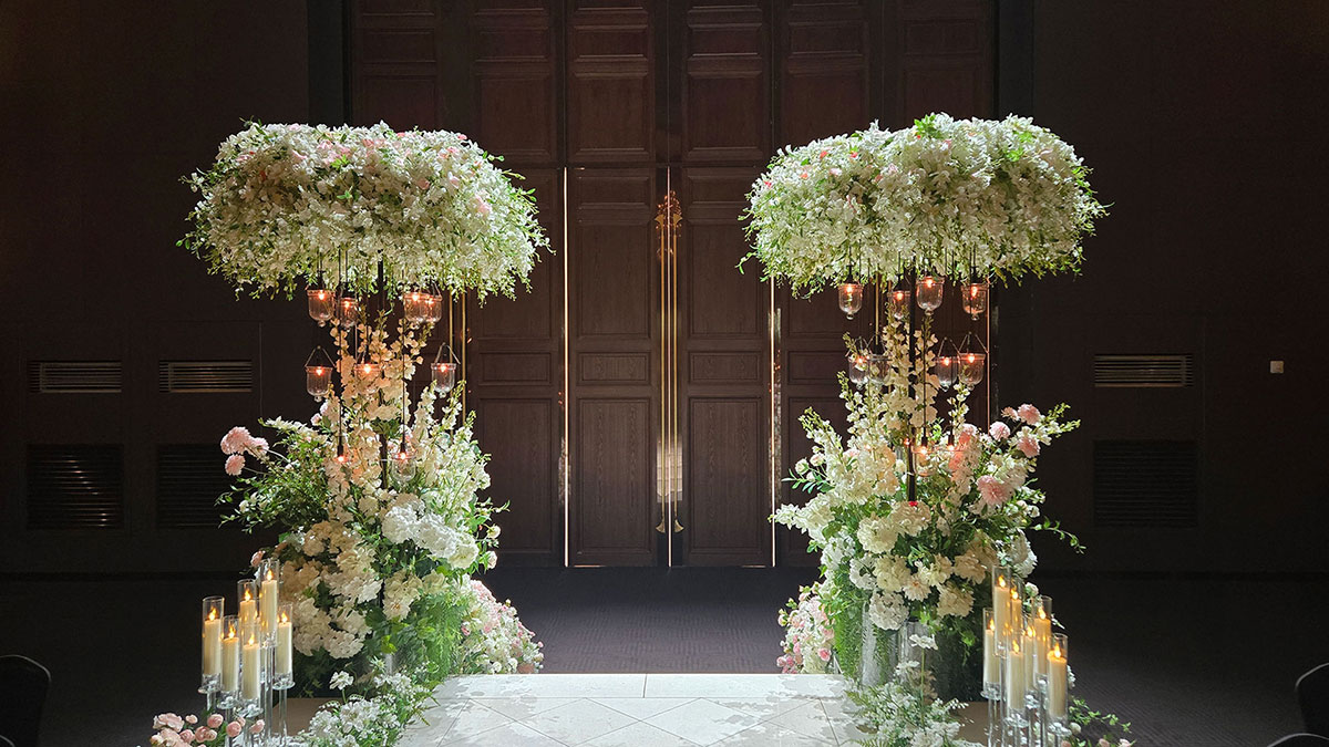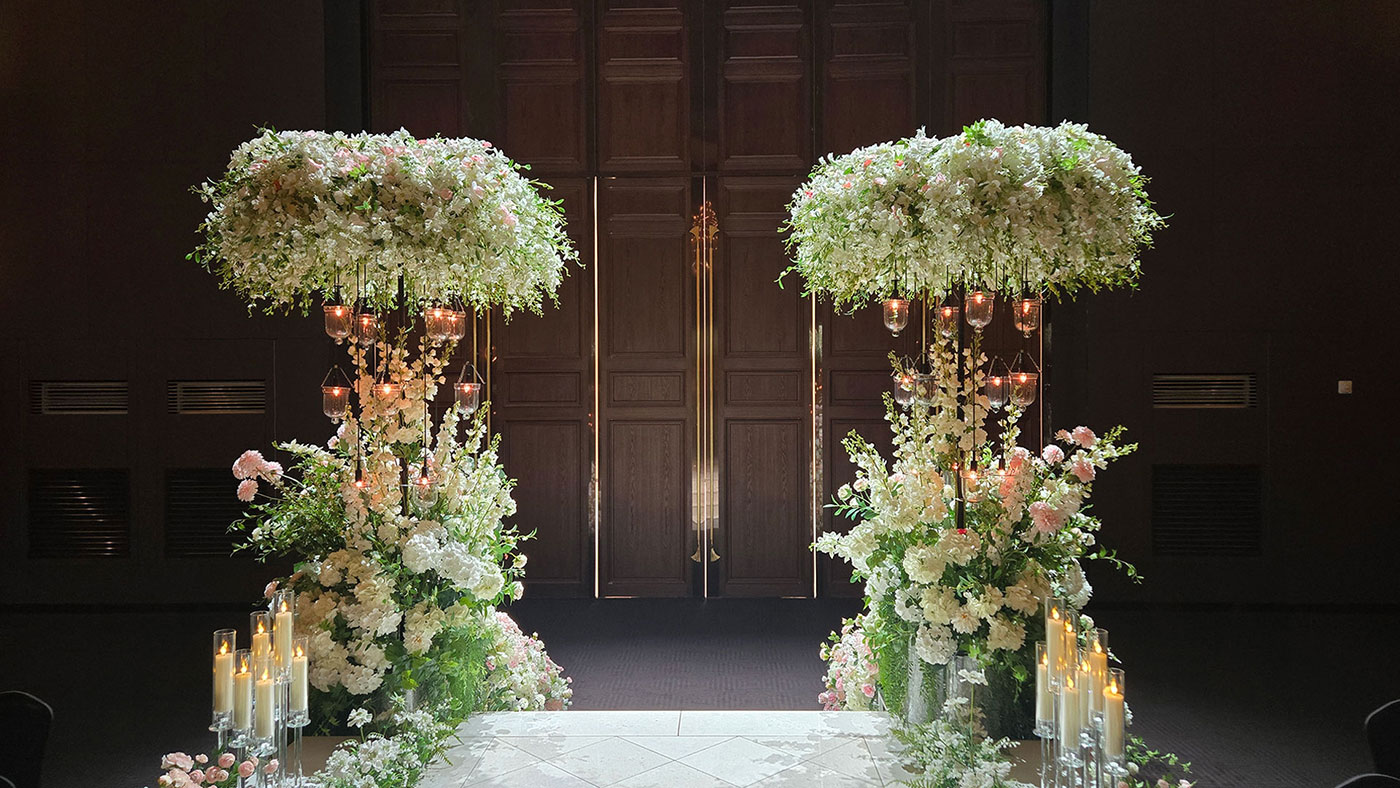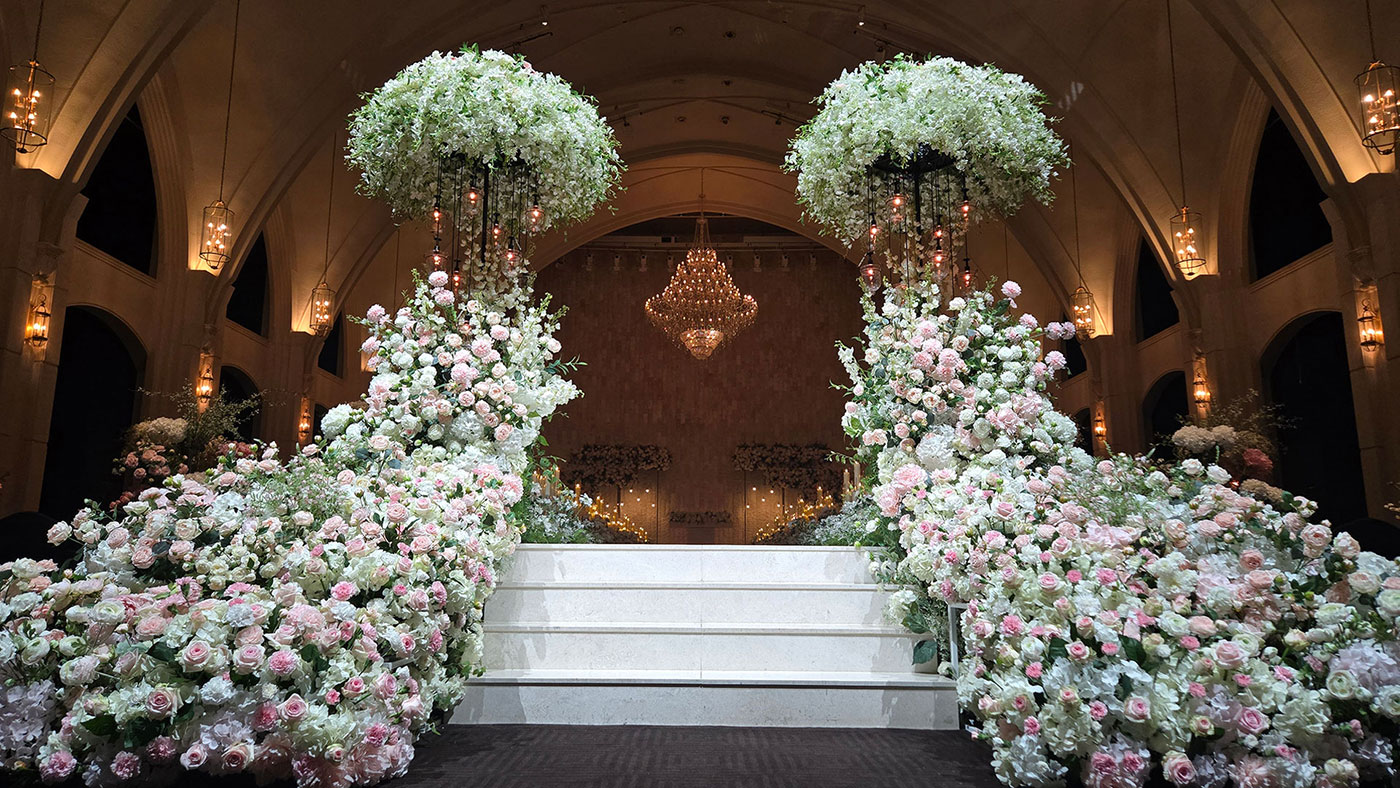 높고 긴 버진로드는 풍부한 생화 세팅과